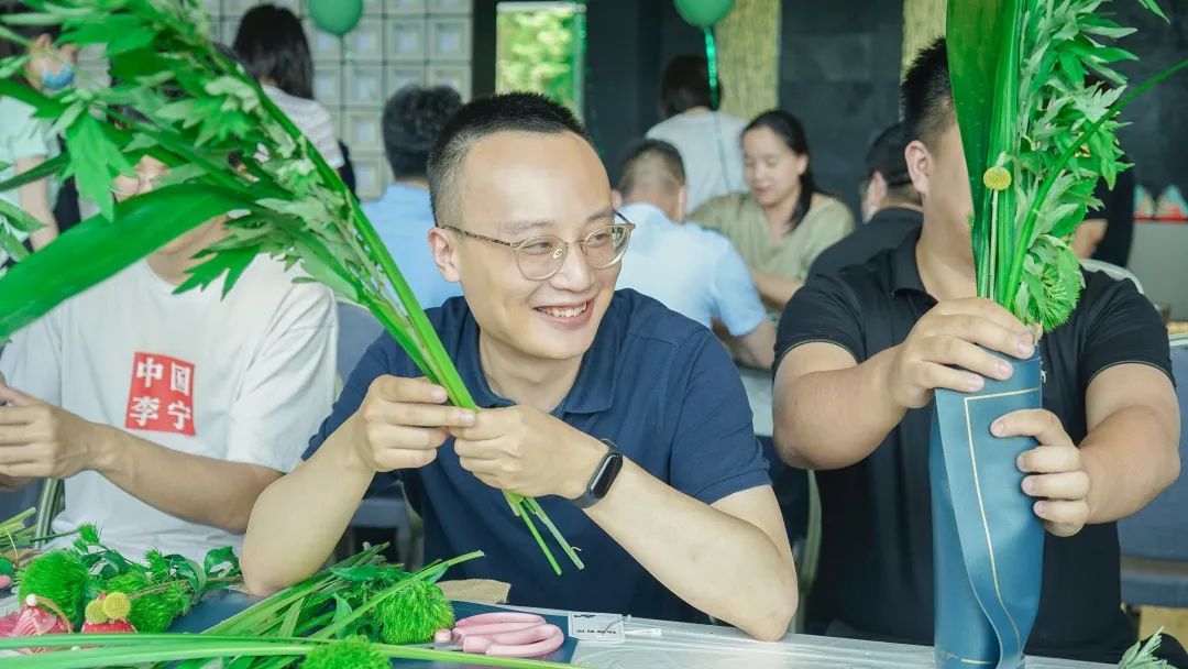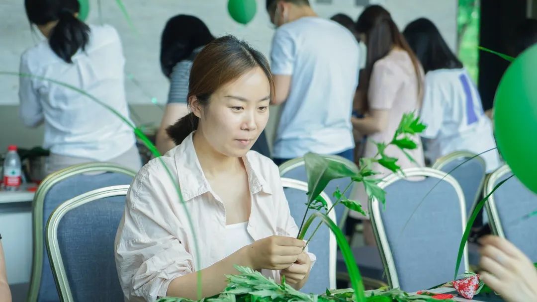 艾草的花語是和平,自古以來有著“清明插柳,端午插艾”的習(xí)俗,每當(dāng)端午節(jié)來臨的時(shí)候,人們會(huì)將艾草插在家中的房門以及屋梁之上,保佑家人安康。大家?guī)е鴮?duì)端午民俗不同的見解,充分發(fā)揮動(dòng)手能力,將艾草、菖蒲、小盼草等搭配設(shè)計(jì),制作成一份獨(dú)一無二的端午紀(jì)念品。