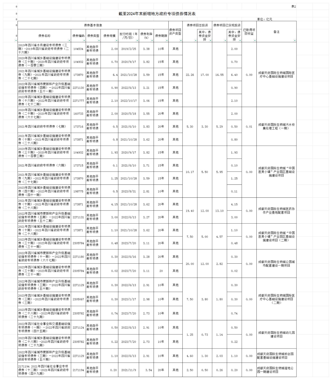2024年成都天府國(guó)際生物城發(fā)展集團(tuán)有限公司新增地方政府專項(xiàng)債券情況